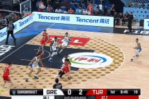 体育资讯9月13日讯 男篮欧锦赛半决赛,土耳其男篮首节26-16领先希腊男篮。