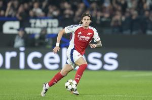 体育资讯9月22日讯 英超第5轮比赛,阿森纳在酋长球场和曼城战成1-1的平手。本场比赛,阿森纳后卫卡拉菲奥里表现活跃多次参与进攻。