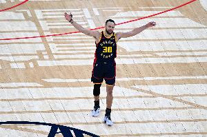 体育资讯11月13日讯 勇士客战马刺,第三节库里单节9分钟狂轰22分。