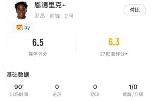 体育资讯2月23日讯 在北京时间今天凌晨结束的法甲比赛,里昂客场1-3不敌斯特拉斯堡,被皇马外租至里昂的恩德里克本场比赛表现不佳,最终仅获得了6.5分的评分。